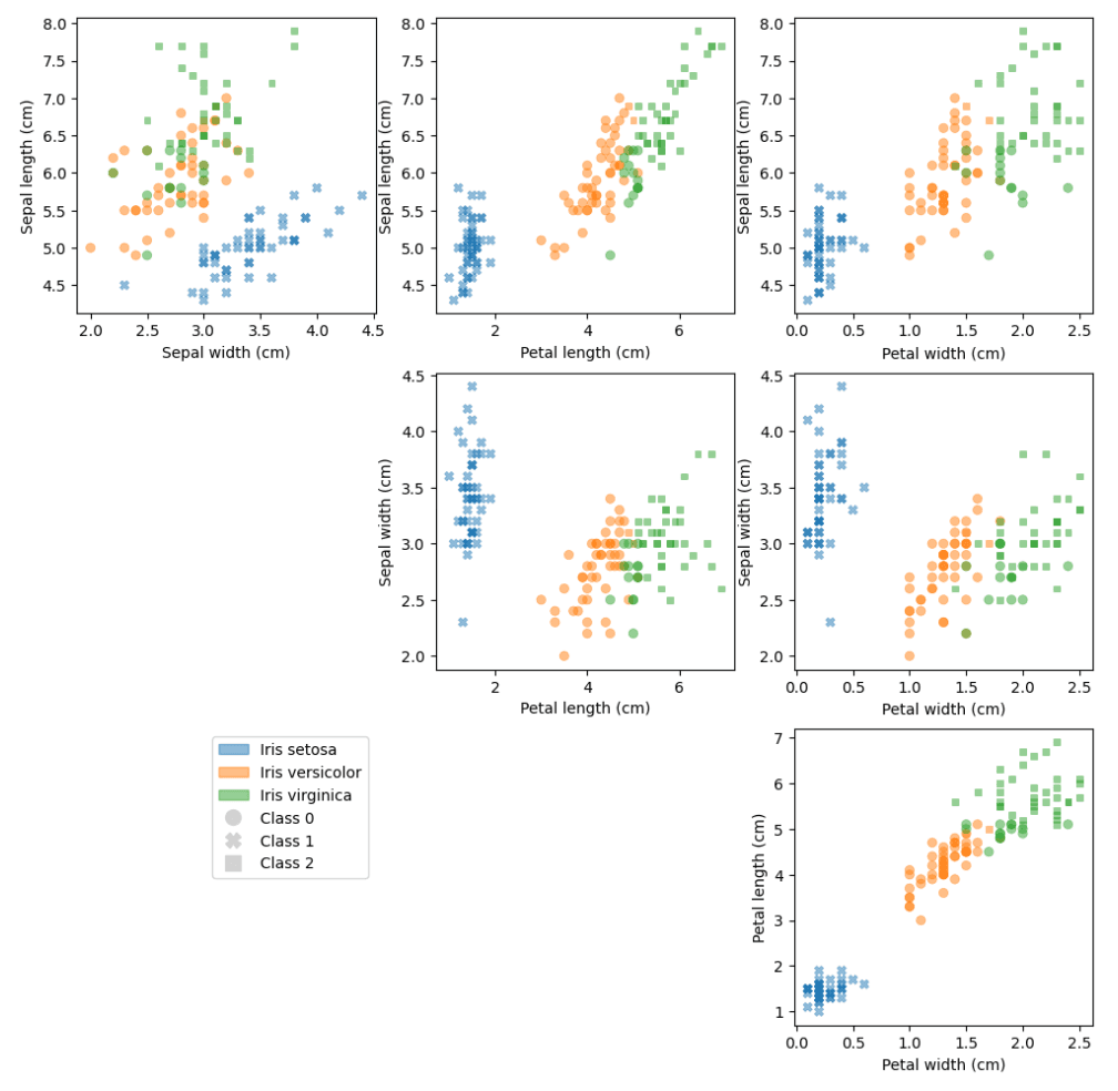 In this tutorial, we'll analyze the Iris dataset, collected in 1936 by the American botanist Edgar Anderson and made famous by statistician Ronald Fisher. The Iris dataset is a basic example of machine learning because it contains three classes of observation: one class is straightforwardly linearly separable from the other two, which can only be distinguished by more sophisticated methods.